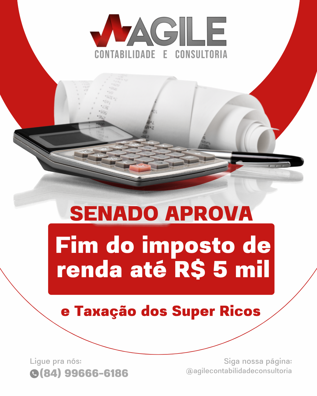 O Senado Federal aprovou o projeto de lei que isenta do Imposto de Renda (IR) todos os brasileiros que ganham até R$ 5 mil por mês. O texto, parte do PL 1087/2025, também concede desconto parcial para rendas até R$ 7.350 e cria uma alíquota mínima de 10% para quem recebe mais de R$ 1,2 milhão por ano.